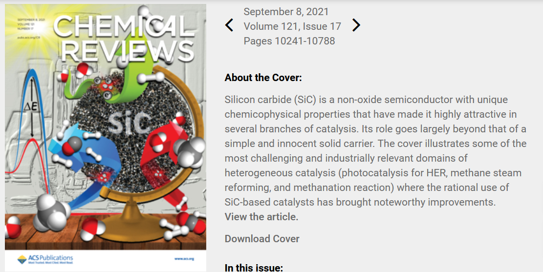 近日,郭向云教授應(yīng)邀與意大利國(guó)家研究委員會(huì)、中科院大連化學(xué)物理研究所、SICAT公司、法國(guó)國(guó)家科研中心等研究人員合作撰寫的關(guān)于高比表面積碳化硅催化應(yīng)用的綜述文章“Porous Silicon Carbide (SiC): A Chance for Improving Catalysts or Just Another Active-Phase Carrier?”在化學(xué)領(lǐng)域國(guó)際頂級(jí)綜述類雜志Chemical Reviews上作為封面文章發(fā)表。該論文系統(tǒng)地介紹了碳化硅作為催化劑載體在催化領(lǐng)域中的應(yīng)用情況:(1)精細(xì)化學(xué)品合成,如烷烴氧化制烯烴和含氧化合物、不飽和鍵加氫、C-X鍵形成等;(2)燃料制備,如各種液體燃料、天然氣和氫氣;(3)環(huán)境保護(hù)和修復(fù),如水和空氣中有機(jī)污染物的氧化脫除及分解;(4)燃料電池催化劑,如甲醇和乙醇的電氧化、氧氣還原等;(5)光催化過程,如光解水產(chǎn)氫、精細(xì)化學(xué)品光催化合成、有機(jī)污染物降解等;(6)碳化硅復(fù)合物無(wú)金屬催化劑等。并就碳化硅催化劑研究中應(yīng)該關(guān)注的重點(diǎn),以及未來(lái)發(fā)展趨勢(shì)作了展望。