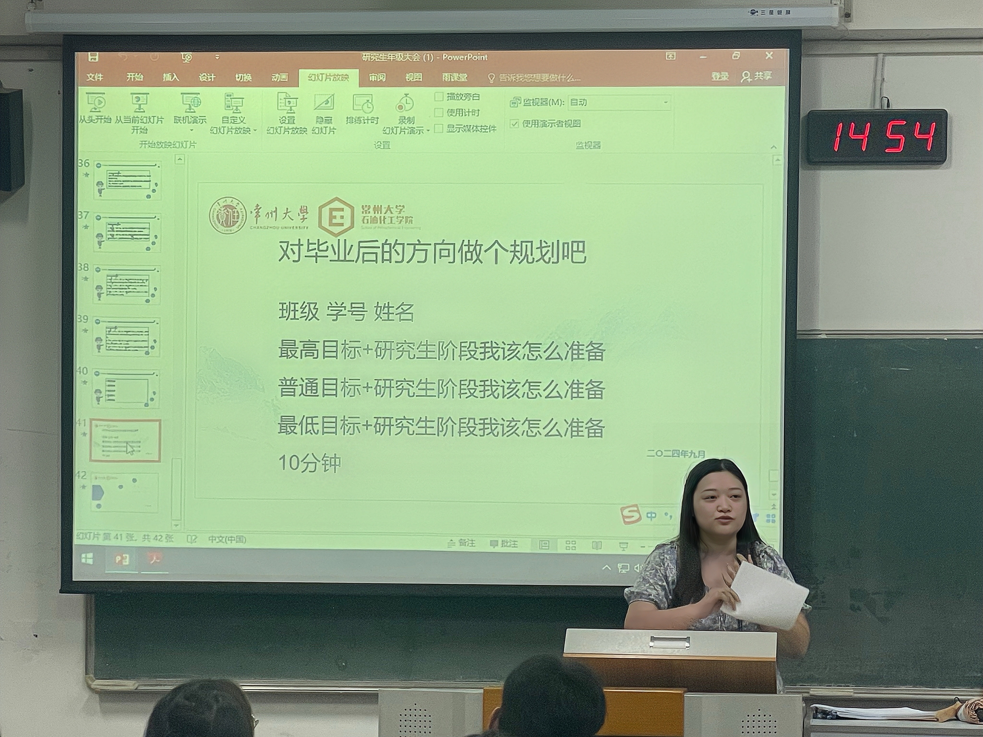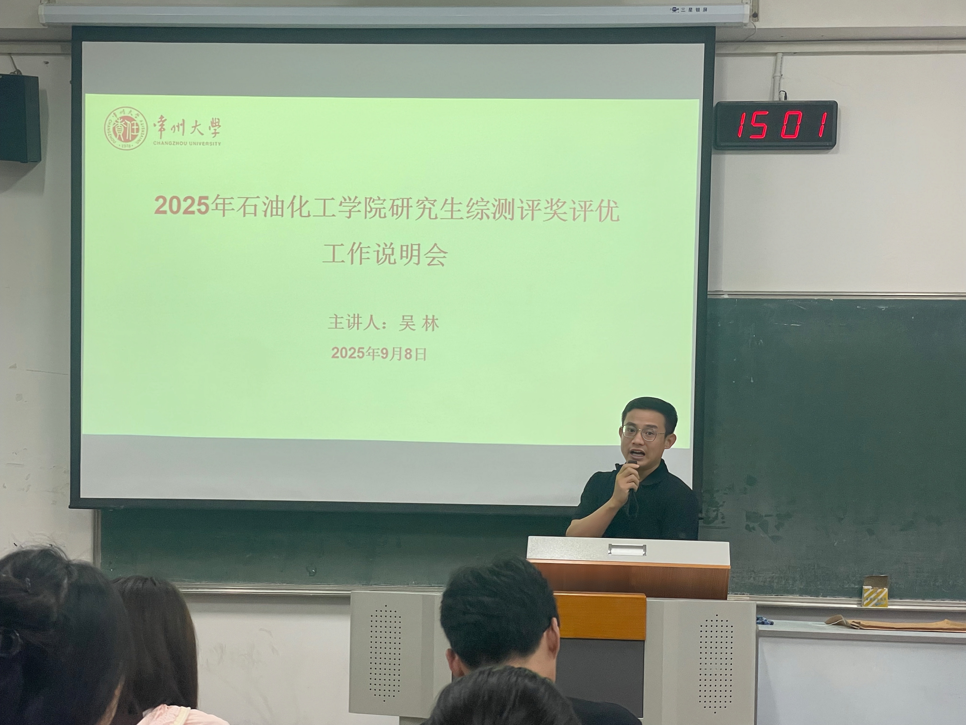 會(huì)上,趙彩霞、劉爽簡(jiǎn)要介紹了自身工作內(nèi)容,并圍繞 “常州城市文化”、“常州大學(xué)校史”、“學(xué)院部門及其職能”、“學(xué)習(xí)科研與職業(yè)規(guī)劃”、“規(guī)章制度與評(píng)獎(jiǎng)評(píng)優(yōu)”、“安全教育”六大核心板塊進(jìn)行講解。隨后,研究生輔導(dǎo)員吳林就研究生綜合素質(zhì)評(píng)價(jià)與獎(jiǎng)助學(xué)金評(píng)定的相關(guān)政策辦法進(jìn)行了詳細(xì)解讀,幫助同學(xué)們明晰了未來(lái)努力的方向。接下來(lái),學(xué)院研究生會(huì)主席呂燁松對(duì)研會(huì)各部門職能作了系統(tǒng)介紹,并鼓勵(lì)研究生新生踴躍報(bào)名加入,在實(shí)踐中鍛煉自我、服務(wù)同學(xué)、貢獻(xiàn)力量。最后,趙彩霞、劉爽分別對(duì)大會(huì)內(nèi)容進(jìn)行總結(jié),希望同學(xué)們盡快適應(yīng)新環(huán)境、新身份,科學(xué)規(guī)劃研究生生活,積極參與學(xué)術(shù)研究與校園活動(dòng),全面提升綜合素養(yǎng)。