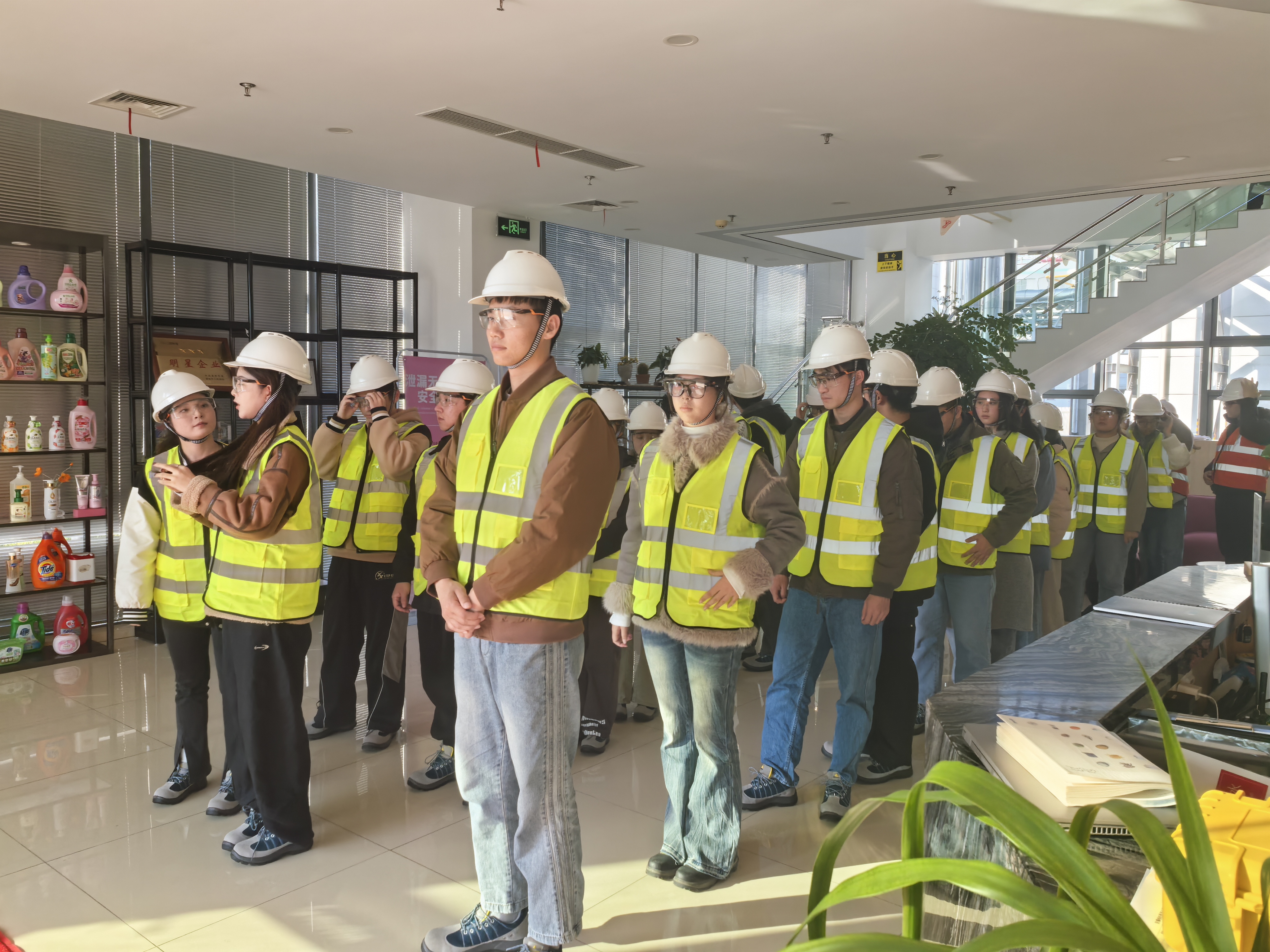 隨后,在廠區(qū)負(fù)責(zé)人的帶領(lǐng)下,我院一行前往罐裝區(qū)、倉(cāng)儲(chǔ)區(qū)、生產(chǎn)車間、質(zhì)檢研究中心參觀和交流。參觀期間,各車間負(fù)責(zé)人帶領(lǐng)大家深入生產(chǎn)一線,講解香精香料產(chǎn)品的自動(dòng)化生產(chǎn)工藝和倉(cāng)儲(chǔ)技術(shù),同學(xué)們有序排隊(duì)行進(jìn),遵守公司相關(guān)規(guī)定,并積極提問(wèn)交流,讓大家沉浸式體驗(yàn)現(xiàn)代化工的智能化建設(shè)和安全性保障。
