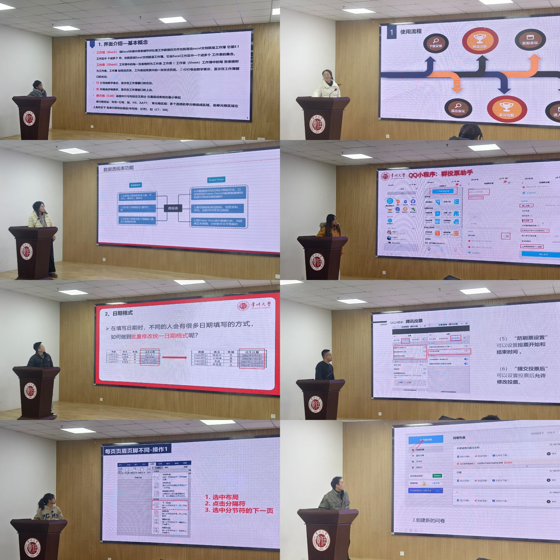 會上,各主講人主講人結(jié)合研究生工作實(shí)際,分享了Excel的基礎(chǔ)、進(jìn)階和高級操作,帶領(lǐng)大家學(xué)習(xí)了文檔規(guī)范排版、格式設(shè)置、數(shù)據(jù)處理等方面的操作技巧,并根據(jù)不同的工作場景,對騰訊會議、在線表格、問卷星等信息收集工具進(jìn)行現(xiàn)場演示。此外,主講人結(jié)合日常展示匯報(bào)所需,講解了PPT、PDF實(shí)用功能,并推薦了高效PDF工具。培訓(xùn)過程中,宣講人傾囊相授,學(xué)生干部們聚精會神,現(xiàn)場跟學(xué)操作,并就實(shí)際工作中遇到的問題進(jìn)行交流討論。