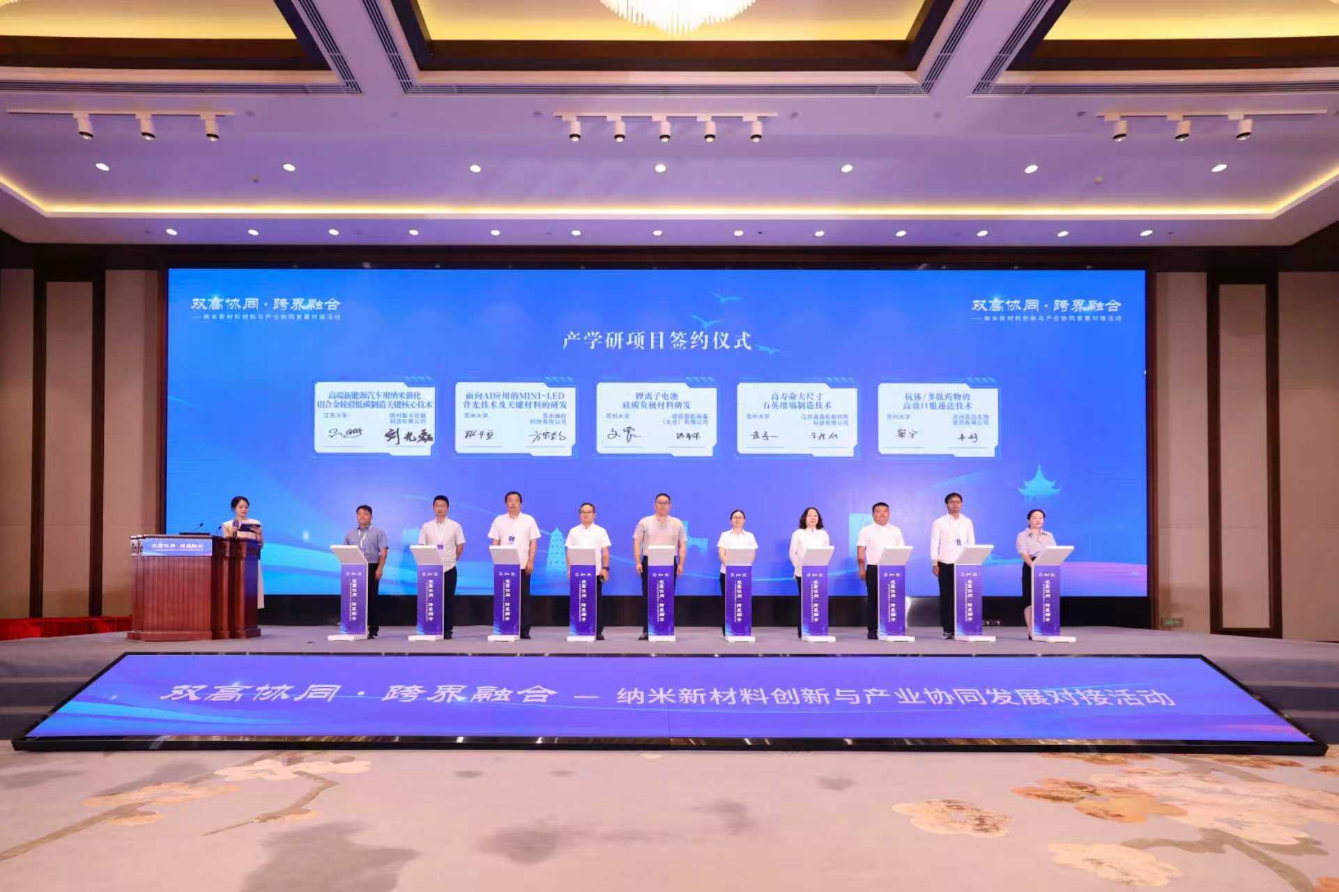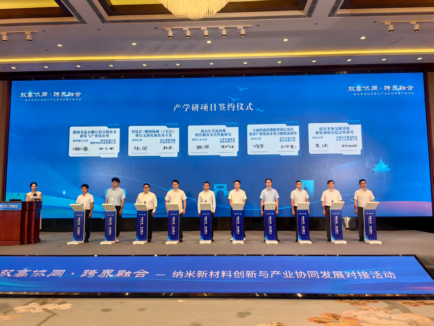 蘇州納米科技協(xié)同創(chuàng)新中心與全國高校先進(jìn)材料區(qū)域技術(shù)轉(zhuǎn)移轉(zhuǎn)化中心(江蘇)簽署合作協(xié)議,中國藥科大學(xué)等6所高校協(xié)同創(chuàng)新中心與全國高校生物醫(yī)藥區(qū)域技術(shù)轉(zhuǎn)移轉(zhuǎn)化中心(江蘇蘇州)達(dá)成共建共識(shí),10個(gè)校企合作項(xiàng)目同步簽約,其中我校光伏科學(xué)與工程協(xié)同創(chuàng)新中心、先進(jìn)催化與綠色制造協(xié)同創(chuàng)新中心分別與江蘇晶盛旺新材料科技有限公司、中石化南京化工研究院有限公司簽約合作項(xiàng)目。常州大學(xué)等江蘇高校納米新材料領(lǐng)域多項(xiàng)重大科技成果同步發(fā)布,涵蓋光伏、生物醫(yī)藥、環(huán)境治理、半導(dǎo)體材料等關(guān)鍵領(lǐng)域。