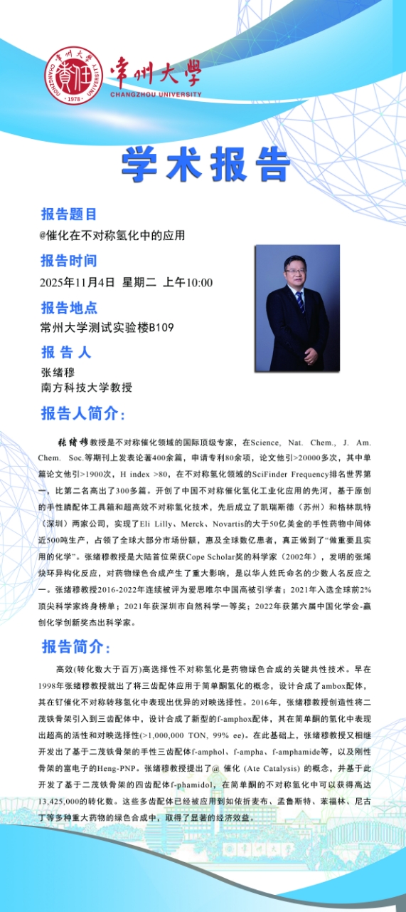 | 【學(xué)術(shù)報(bào)告】11月4日自然與合成有機(jī)化學(xué)研究院學(xué)術(shù)報(bào)告——張緒穆教授 南方科技大學(xué) |
