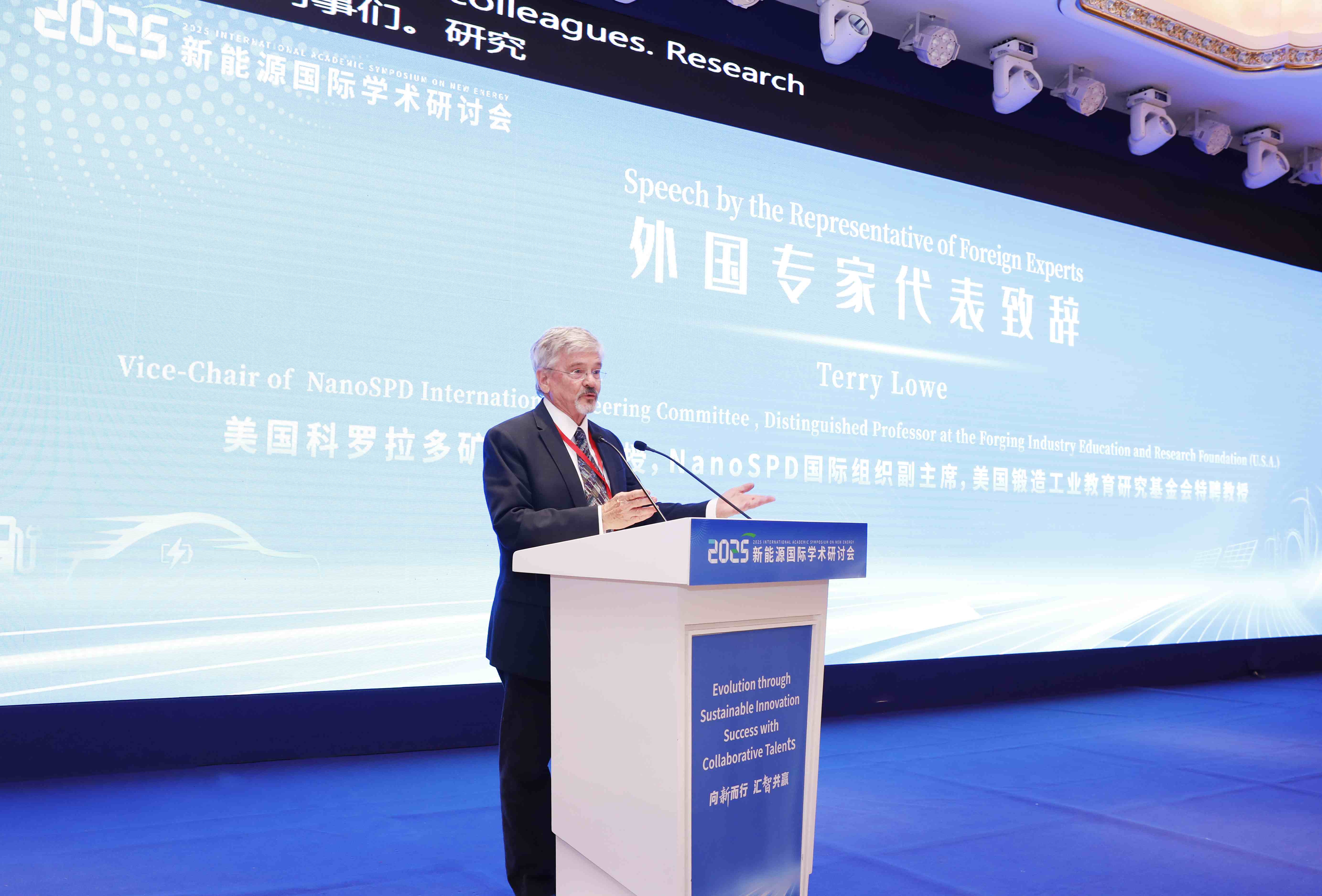 特里?柯蒂斯?洛作為外專代表表達(dá)了對參與此次大會的喜悅之情,希望以此次大會為契機(jī),與中方機(jī)構(gòu)及全球同行在新能源材料與裝備研發(fā)方面取得更多實(shí)質(zhì)性突破。 特里?柯蒂斯?洛教授致辭